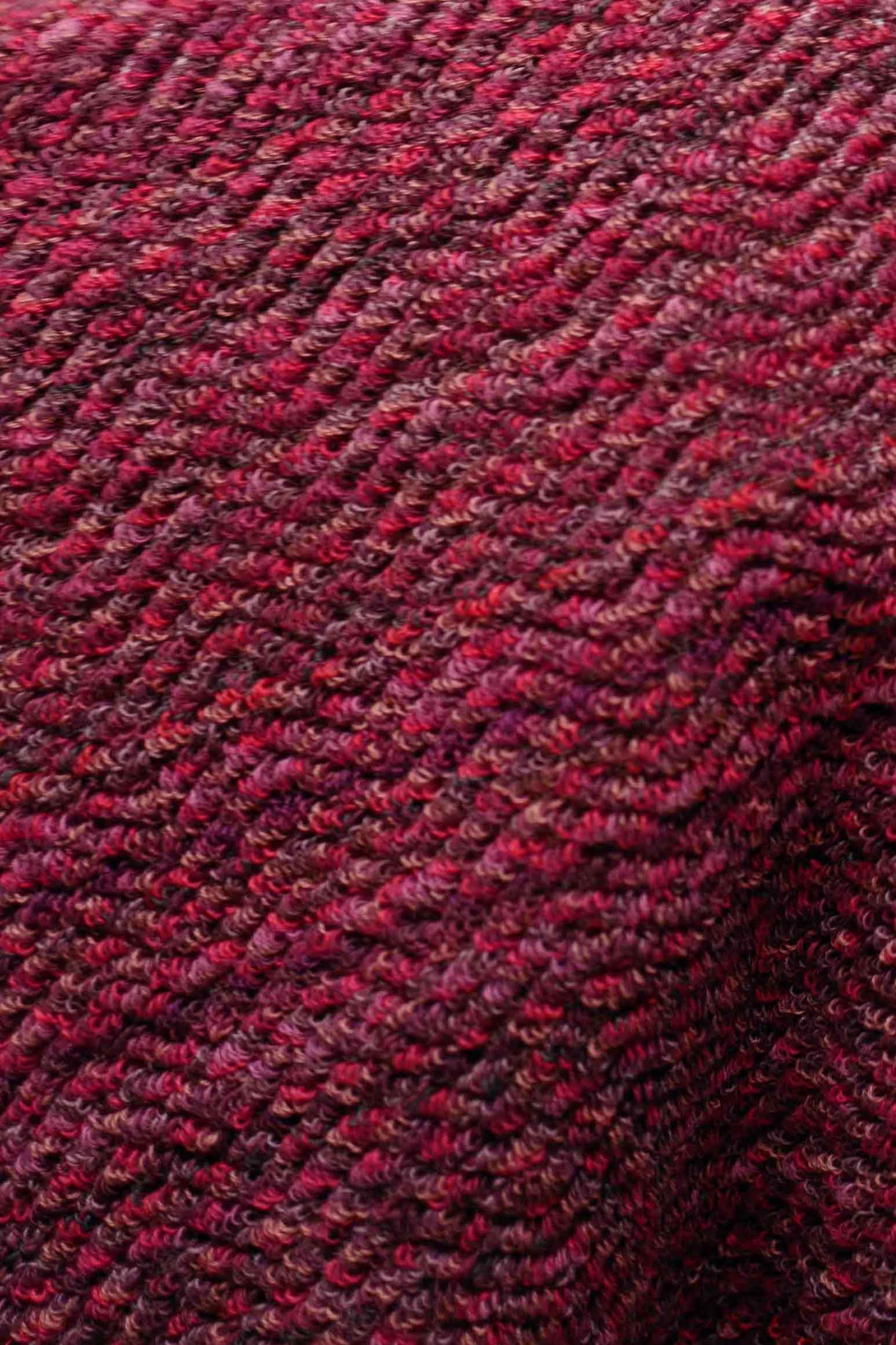 Deep garnet and cherry tones move through the weave, creating a rich, layered texture with warmth and depth – not seasonal, just timeless.